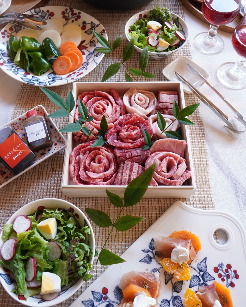 お肉がお花畑のように美しく並んだ光景。
